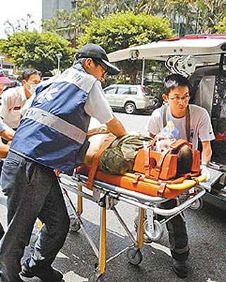 臺(tái)軍士官長(zhǎng)孫國(guó)勇墜樓后送醫(yī)急救,但到院前已無生命跡象。臺(tái)灣《蘋果日?qǐng)?bào)》圖
