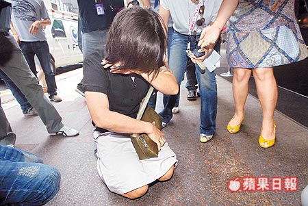 陳鎮(zhèn)慧昨離開特偵組后為躲避媒體采訪,一路奔跑,不慎跌坐地上掩面痛哭。臺灣《蘋果日報》圖