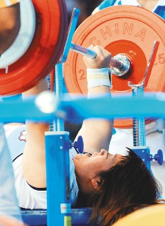 連病魔都擊不垮,林資惠什么也不怕,就這樣苦練了兩年,昨天在北京殘奧會(huì)女子舉重75公斤級(jí),第一次試舉就以137.5公斤技驚全場(chǎng),順利拿下金牌。