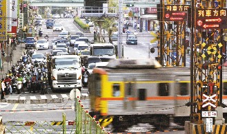 施工10年的“南港項(xiàng)目”松山至南港地下化鐵路和臺(tái)鐵兩個(gè)新車站將啟用,臺(tái)北市平交道堵車的景象將走入歷史,圖為該市研究院路平交道火車通過時(shí),車輛大排長(zhǎng)龍。