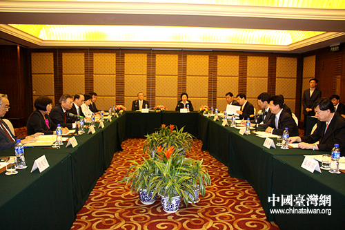 海協(xié)會(huì)專家團(tuán)與;鶗(huì)食品衛(wèi)生專家團(tuán)今天上午在北京就問題奶粉事件和兩岸建立食品安全溝通聯(lián)系機(jī)制等事宜舉行座談(李徽 攝)