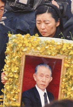 王永慶的靈柩,17日上午8時(shí)從臺北桃園機(jī)場移至桃園縣龜山鄉(xiāng)長庚大學(xué)活動中心。當(dāng)二房長子王文洋捧著靈位,三房長女王瑞華捧著黃花鑲邊的遺像,跟著扶靈的家眷步入靈堂時(shí),在場人士無不肅穆哀容,悲痛飲泣。