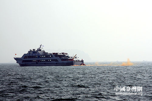 中國臺灣網10月24日廈門消息 汽笛長鳴,濃煙彌漫。23日下午,兩岸首次聯合大規(guī)模海上搜救演習在廈金航線海域進行。這是廈金航線上首次進行兩岸共同參與的海陸空聯合搜救演習,標志著兩岸海上搜救合作在互通信息的基礎上更進一步。