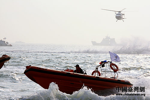 兩岸首次聯合大規(guī)模海上搜救演習23日在廈金航線海域進行(李徽 攝)