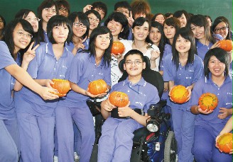 據(jù)報道,讀商業(yè)經(jīng)營科的陳揆文,出生22天時就被檢出罹患“神經(jīng)母細胞瘤”,歷經(jīng)多次手術及化療,肚臍以下沒了知覺,從小就坐著輪椅,由于下半身癱瘓,他須包著尿布,因此常造成泌尿道感染。