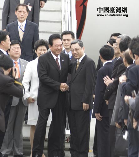 以海協(xié)會會長陳云林為團長的海協(xié)會協(xié)商代表團3日中午乘坐包機抵達臺灣桃園機場。海基會秘書長高孔廉以及;鶗嚓P負責人前往機場迎接。中國臺灣網(wǎng) 田云鵬攝