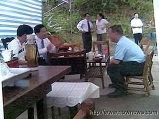 被曝光的臺特偵組兩位檢察官吳文忠、朱朝亮與陳水扁的合照。圖片:臺灣“今日新聞”