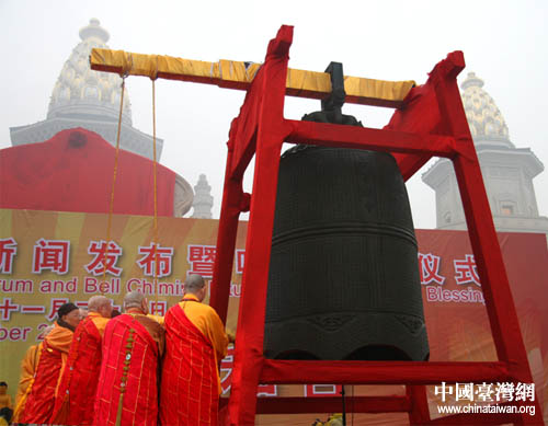 中國臺灣網(wǎng)11月24日無錫消息 昨天上午,第二屆世界佛教論壇新聞發(fā)布暨鳴鐘祈福儀式在無錫靈山舉行。中國佛教協(xié)會會長一誠長老、國際佛光會總會長星云大師、香港佛教聯(lián)合會會長覺光長老于同一時刻分別在無錫、高雄、香港三地敲響祈福鐘聲。帶著兩岸三地佛教界對世界和平、社會和諧、兩岸和睦的美好祝愿,莊嚴(yán)深沉的鐘聲遠(yuǎn)揚(yáng)。