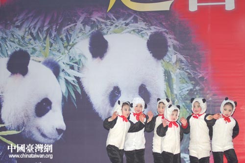 12月23日,四川雅安碧峰峽基地舉行大熊貓赴臺(tái)啟動(dòng)儀式。啟運(yùn)儀式開始前,當(dāng)?shù)匦∨笥驯硌菸乃嚬?jié)目。中國臺(tái)灣網(wǎng) 田云鵬 攝