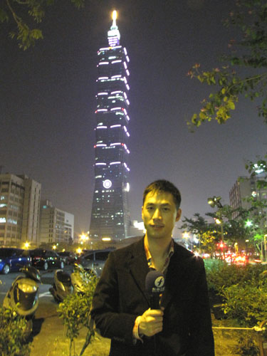 東南衛(wèi)視臺灣駐點記者葉青林在臺北101大樓前出鏡。(圖片提供:東南衛(wèi)視)