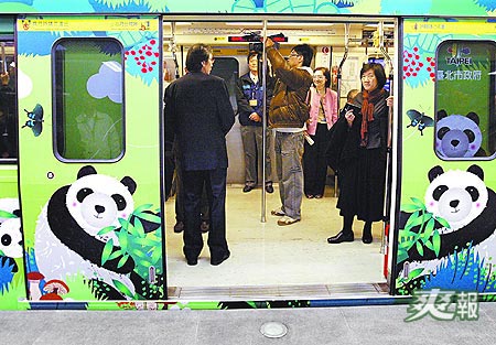 臺(tái)北捷運(yùn)大熊貓彩繪列車。來(lái)源:臺(tái)灣《爽報(bào)》