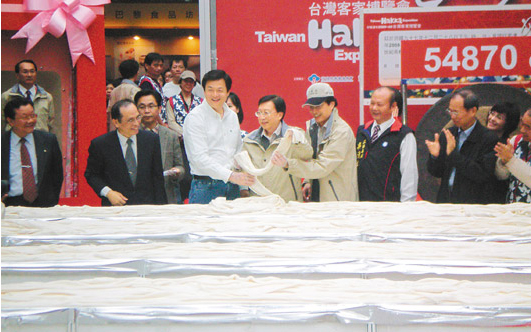 中國臺灣網(wǎng)12月29日消息 據(jù)臺灣《聯(lián)合報》報道,臺北縣三峽客家文化園區(qū)舉辦臺灣客家博覽會,昨天制作長達500多米長的粄條(流行于華南、粵東、臺灣地區(qū)的客家美食,是大米類副食產(chǎn)品),創(chuàng)吉尼斯世界紀錄,主辦單位隨后大火快炒創(chuàng)紀錄的粄條,讓在場民眾大快朵頤。