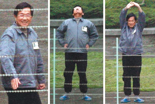 陳水扁12日下午在臺(tái)北看守所放風(fēng),不斷擺姿勢給在附近的臺(tái)灣媒體記者拍攝。來源:臺(tái)灣《聯(lián)合報(bào)》