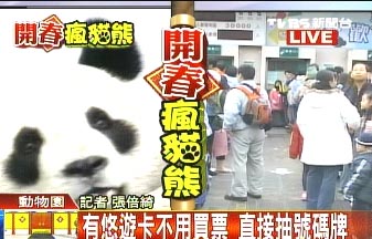 臺(tái)北動(dòng)物園表示,每天將會(huì)開(kāi)放2.2萬(wàn)個(gè)名額進(jìn)場(chǎng)看大熊貓,而每個(gè)場(chǎng)次入館,只有400名民眾,每次有10分鐘時(shí)間限制。園方自今天起到初七,每天都會(huì)出動(dòng)40名工作人員,維持現(xiàn)場(chǎng)秩序,希望每一位參觀的民眾都能順利看到“團(tuán)團(tuán)”、“圓圓”可愛(ài)的模樣。