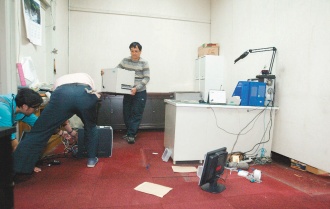 臺“立法院”紅磚樓二樓“秘書處”地板昨天塌陷,“院”方緊急封閉損壞樓層。(臺灣《聯(lián)合報》圖片)