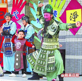 臺灣一學校別出心裁,邀“關(guān)公”教學生做收心操。來源:臺灣《蘋果日報》