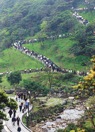 中國(guó)臺(tái)灣網(wǎng)2月16日消息 碧綠草地上,青翠竹林彷佛滴得出水;奇石水瀑旁,人龍靜靜蜿蜒,宛如油畫。3日?qǐng)A寂的臺(tái)灣法鼓山創(chuàng)辦人圣嚴(yán)法師骨灰昨天植存于金山環(huán)保生命園區(qū),逾3萬(wàn)名信眾繞著之字形山路前行,形成巨大壯觀的圖案,5小時(shí)后才緩緩散開。