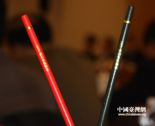 中國臺灣網(wǎng)3月7日北京消息 節(jié)儉是今年兩會會務(wù)的特點,在今天的臺盟臺聯(lián)聯(lián)組討論會場中,記者即發(fā)現(xiàn)了一個節(jié)儉辦會的小細(xì)節(jié)——委員們桌上放的每只鉛筆,筆桿上都標(biāo)著這樣一行小字:100%廢舊報紙制造。