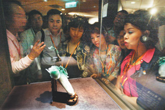 據(jù)臺灣《聯(lián)合報(bào)》報(bào)道,“安利心印寶島萬人行”首發(fā)團(tuán)昨天上午10點(diǎn)半抵達(dá)臺北“故宮博物院”,以各車為單位,由領(lǐng)隊(duì)和臺灣導(dǎo)游依序帶領(lǐng)進(jìn)入。在聽完簡單介紹后,許多團(tuán)員紛紛涌進(jìn)玉石展廳,觀賞著名的“翠玉白菜”和“肉形石”。