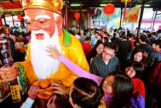 臺(tái)北縣中和市烘爐地土地公廟是求財(cái)神的熱門地點(diǎn),臺(tái)彩董事長(zhǎng)尚瑞強(qiáng)去年請(qǐng)求保佑臺(tái)彩業(yè)績(jī)好,結(jié)果最近頭獎(jiǎng)開到要“倒貼”,他今天要趕著去還愿。圖:臺(tái)灣《聯(lián)合報(bào)》