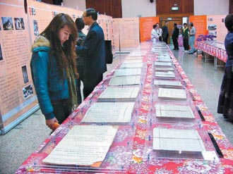 兩岸客家族譜文物展在臺(tái)中縣朝陽(yáng)科大舉辦,現(xiàn)場(chǎng)有上百件珍貴的客家族譜資料。來(lái)源:臺(tái)灣《聯(lián)合報(bào)》