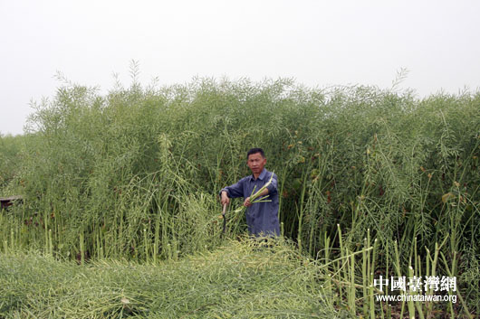 北川新城新址上,搬遷村民鄧大叔正在收割自家田里最后一茬莊家,未來這里將拔地而起一座嶄新的北川城。(中國臺灣網 鐘寶華 攝)