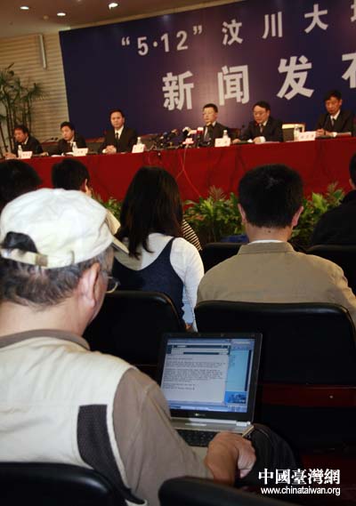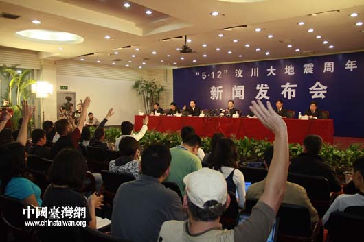 四川省委、省政府在成都舉行“5·12汶川大地震周年” 新聞發(fā)布會,向社會各界通報災(zāi)后重建的情況。(中國臺灣網(wǎng) 鐘寶華 攝)