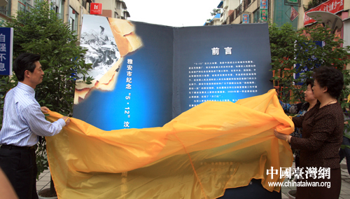 中共雅安市委常委、宣傳部長向華全(左)為圖片展揭幕。(中國臺灣網(wǎng) 田云鵬 攝)
