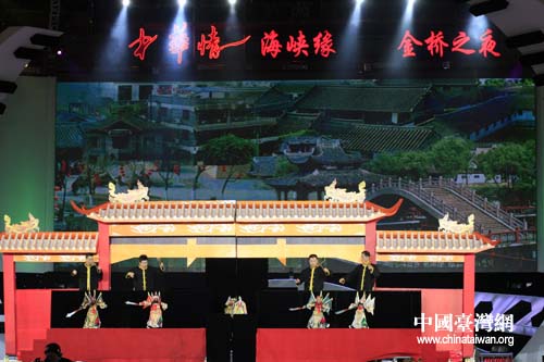 漳州、泉州、廈門、臺灣高雄四地的木偶藝人聯(lián)袂在5月16日晚的“中華情·海峽緣——金橋之夜”大型綜藝晚會上表演木偶戲(臺灣稱布袋戲)。(中國臺灣網(wǎng) 鐘寶華 攝)