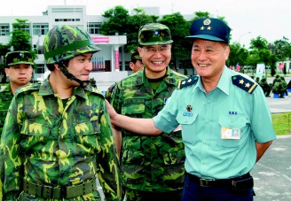 臺(tái)軍前“后備司令部副司令”袁肖龍中將(右)。(資料圖片)