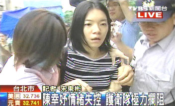 眼見陳幸妤崩潰,由“深綠”人士組成的保護陳幸妤的“護衛(wèi)隊”和其工作的診所護士,立刻一涌而上,安撫、保護陳幸妤進入診所,以避免失控情緒擴大。