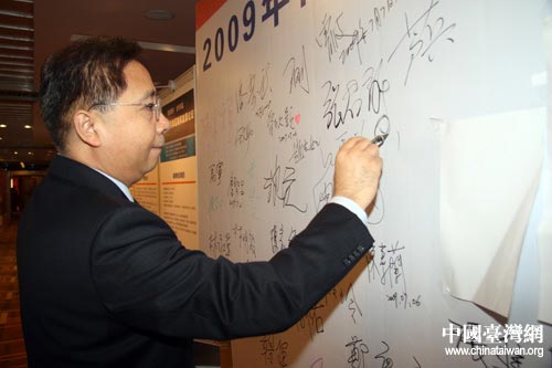 2009年兩岸互聯(lián)網(wǎng)發(fā)展論壇今天在北京開幕,圖為參加論壇的嘉賓在簽名墻上簽名。(中國(guó)臺(tái)灣網(wǎng) 邵磌 攝)