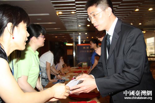 2009年兩岸互聯(lián)網(wǎng)發(fā)展論壇今天在北京開幕,圖為參加論壇的嘉賓簽到。(中國(guó)臺(tái)灣網(wǎng) 邵磌 攝)