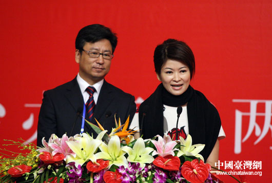 7月11日上午10點20分,第五屆兩岸經(jīng)貿(mào)文化論壇專題報告準時登場,由中央電視臺主持人白巖松和臺灣中天電視臺主持人盧秀芳聯(lián)袂主持。(中國臺灣網(wǎng) 鐘寶華 攝)
