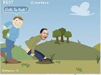 網(wǎng)友設(shè)計(jì)踢扁臀部的游戲,點(diǎn)擊扁身后的人物就會(huì)將腳踢向扁的屁股,而且扁還會(huì)往前飛出去,落地后還會(huì)評(píng)斷游戲者的踢人力道。(圖片來源:臺(tái)灣“今日新聞”)