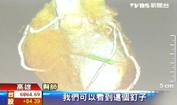 高雄小港醫(yī)院醫(yī)師周俊仁表示:“我們可以看到釘子仿佛是穿過血管,在開刀房趕快把胸骨切開,然后把釘子拔掉,拔掉之后血會噴出來,所以我們再做血管修補手術!