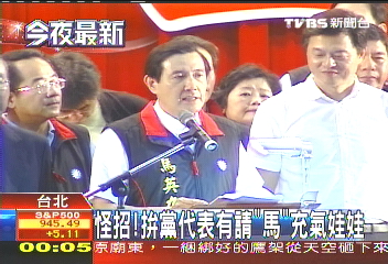 馬英九參選國民黨主席,20日晚到臺北縣造勢。圖片來源:臺灣TVBS電視臺