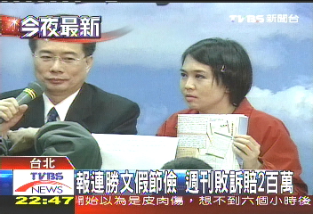 《壹周刊》確定賠償連惠心200萬(wàn)。圖片來(lái)源:臺(tái)灣TVBS電視臺(tái)
