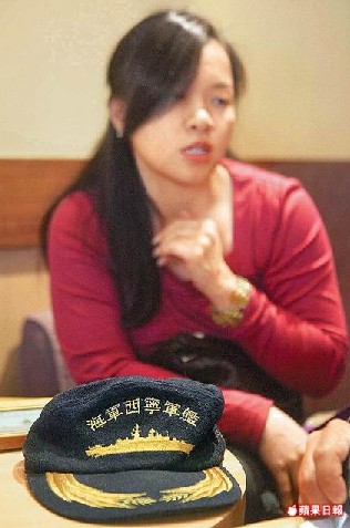 女記者賴(lài)佳雯出示孫海濤送她的定情物軍便帽,要證明兩人親密關(guān)系。圖片來(lái)源:臺(tái)灣《蘋(píng)果日?qǐng)?bào)》