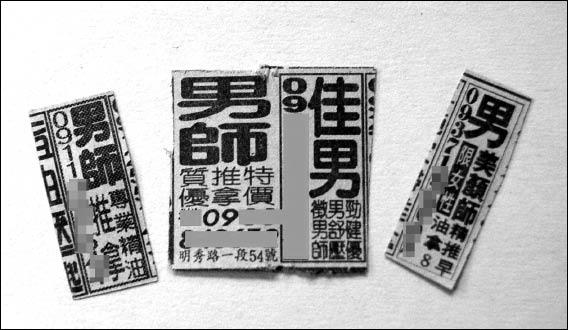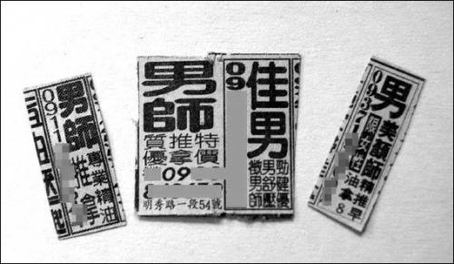 臺(tái)中警方透露,臺(tái)灣男人應(yīng)召案例并不多見(jiàn),且該類男妓不但接女客,有時(shí)也接男同性戀的客人,性關(guān)系復(fù)雜,容易感染性病,在“人肉市場(chǎng)”中屬高危險(xiǎn)群,提醒尋芳客注意。(羅煜明)