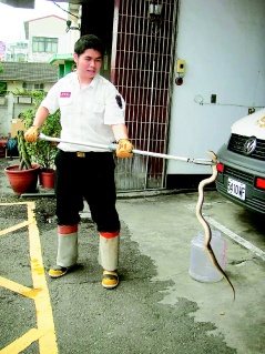 消防分隊長李昹熹表示,“莫拉克”臺風(fēng)過后,幾乎天天都有人請求派員抓蛇,以眼鏡蛇居多,其次為臭青母和南蛇,他提醒民眾應(yīng)小心蛇蹤。