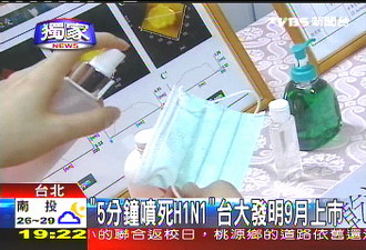 臺(tái)大研發(fā)團(tuán)隊(duì)發(fā)明的號(hào)稱(chēng)能殺死甲型H1N1流感病毒的噴劑。(來(lái)源:臺(tái)灣TVBS電視臺(tái))