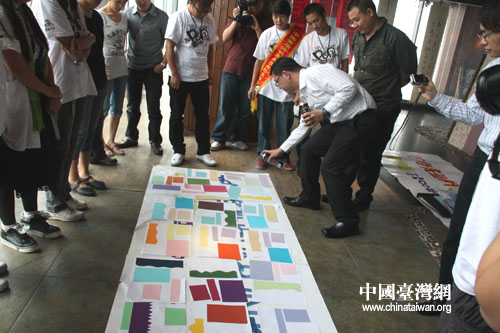 簡仁吉進行噴膠示范 (中國臺灣網(wǎng) 徐維彬 攝)