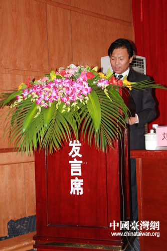 西藏自治區(qū)黨委宣傳部副部長崗青致辭 (中國臺灣網(wǎng) 李典典 攝)