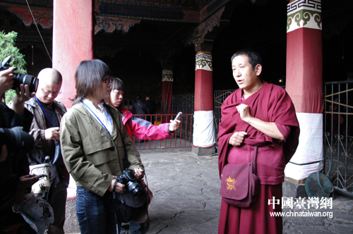 中國臺灣網(wǎng)9月11日拉薩消息 10日上午,參加第三屆全國重點網(wǎng)絡(luò)媒體西藏行大型采訪報道活動的60名記者,走進了采訪的第一站——拉薩大昭寺。
