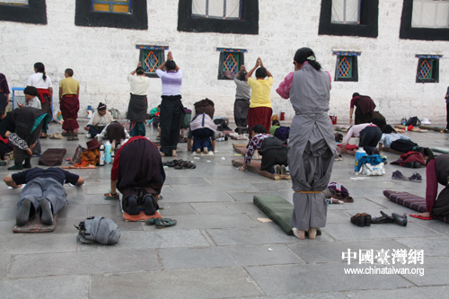 大昭寺前虔誠的信徒(中國臺灣網(wǎng) 李典典 攝)
