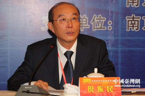 中國(guó)教育學(xué)會(huì)高中教育專業(yè)委員會(huì)副理事長(zhǎng)倪振民發(fā)言。(中國(guó)臺(tái)灣網(wǎng) 董潔 攝)