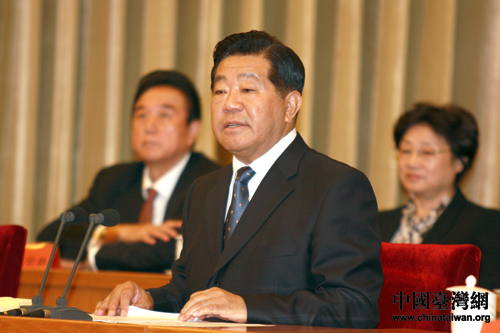 中國(guó)和平統(tǒng)一促進(jìn)會(huì)第八屆理事大會(huì)24日在京閉幕。賈慶林出席閉幕會(huì)并代表中共中央對(duì)大會(huì)的召開(kāi)表示祝賀。他在講話中充分肯定了中國(guó)和平統(tǒng)一促進(jìn)會(huì)七屆理事大會(huì)以來(lái)的工作。(中國(guó)臺(tái)灣網(wǎng) 田云鵬 攝)