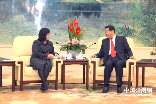 11月3日上午,中共中央政治局常委、全國政協(xié)主席賈慶林在北京人民大會(huì)堂會(huì)見出席“2009海峽兩岸工會(huì)論壇”的侯彩鳳等部分臺(tái)灣代表。 (中國臺(tái)灣網(wǎng) 田云鵬 攝)