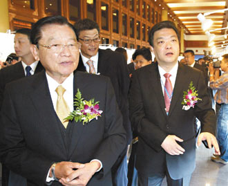 臺(tái)灣海基會(huì)董事長(zhǎng)江丙坤(前左)昨天出席第十二屆京臺(tái)科技論壇開(kāi)幕式。來(lái)源:臺(tái)灣《聯(lián)合報(bào)》